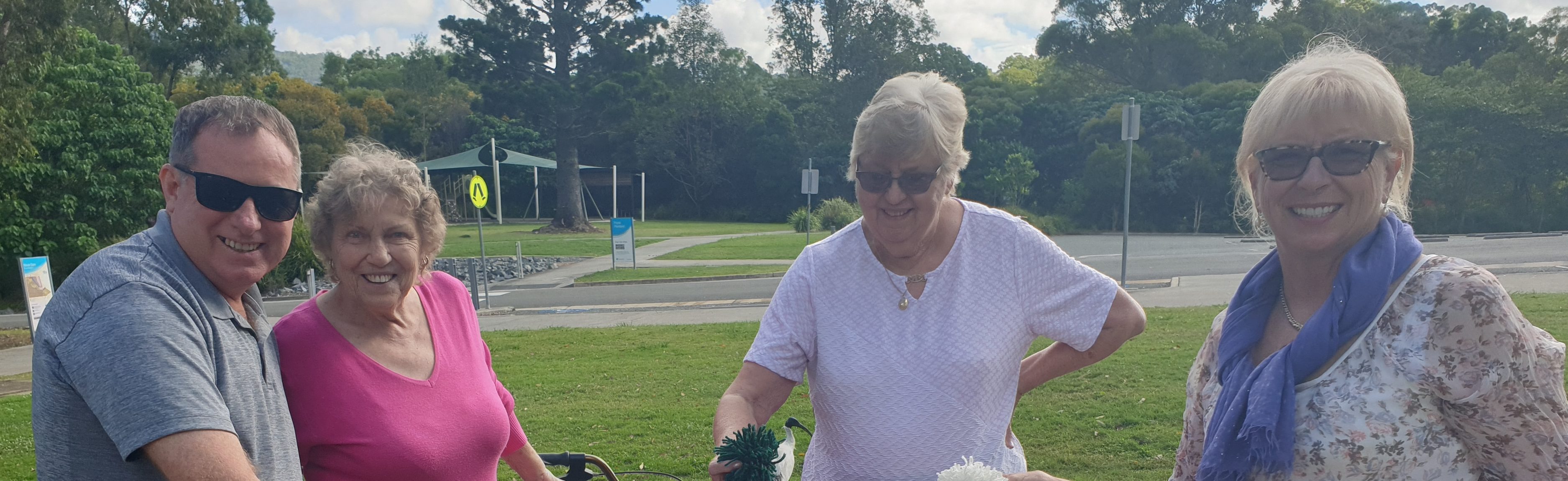 Shirley, sewed a hessian backing with bamboo railings in preparation to display the group’s handiwork. Then both Lyn and Shirley began the task of teaching others how to sew the hundreds of pom poms onto the backing, and so it became affectionately named by the group.